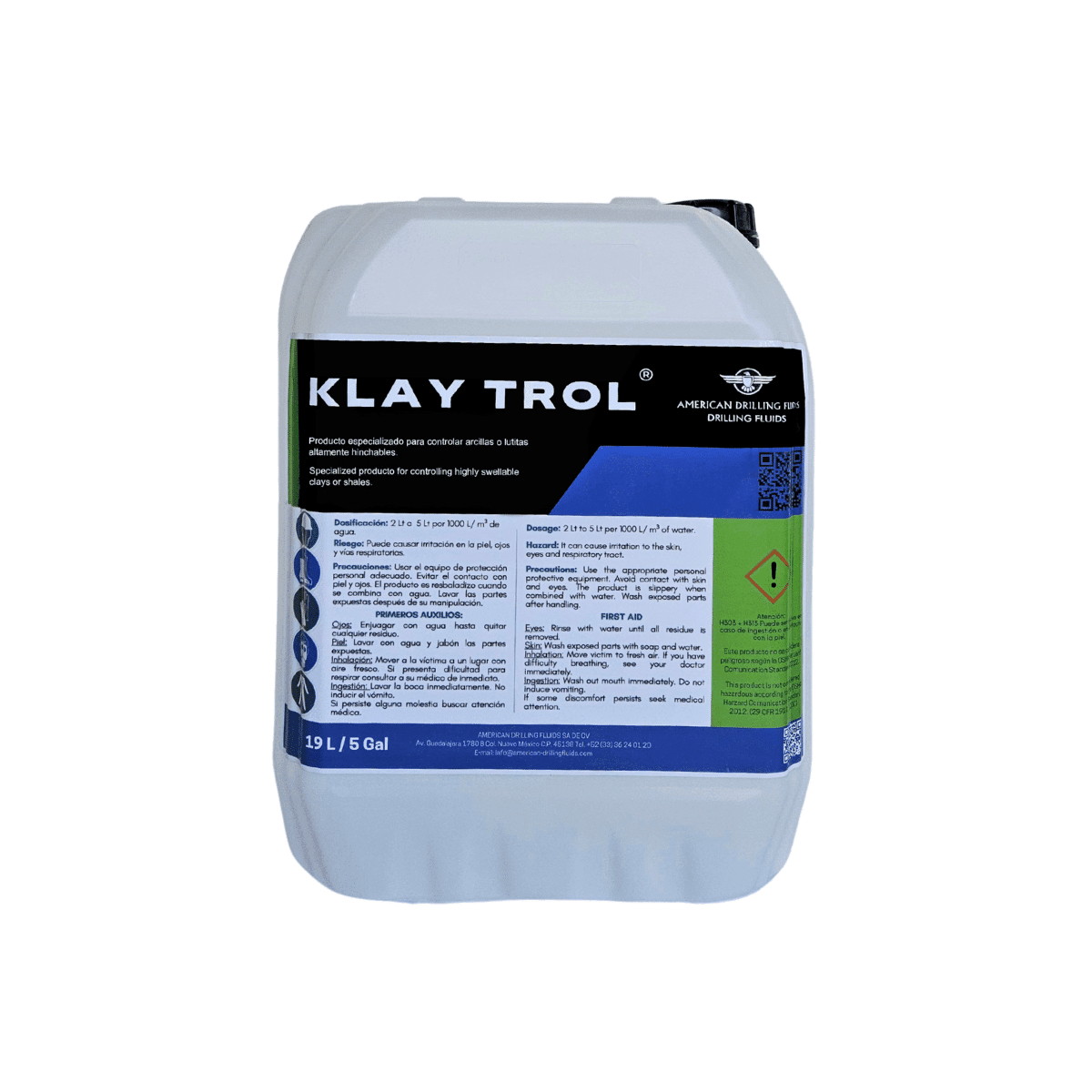 KLAY TROL se presenta en bidón de 19 Lts (5 GL). Debe almacenarse a temperatura ambiente en espacios protegidos de la lluvia y sol, en un área ventilada y seca